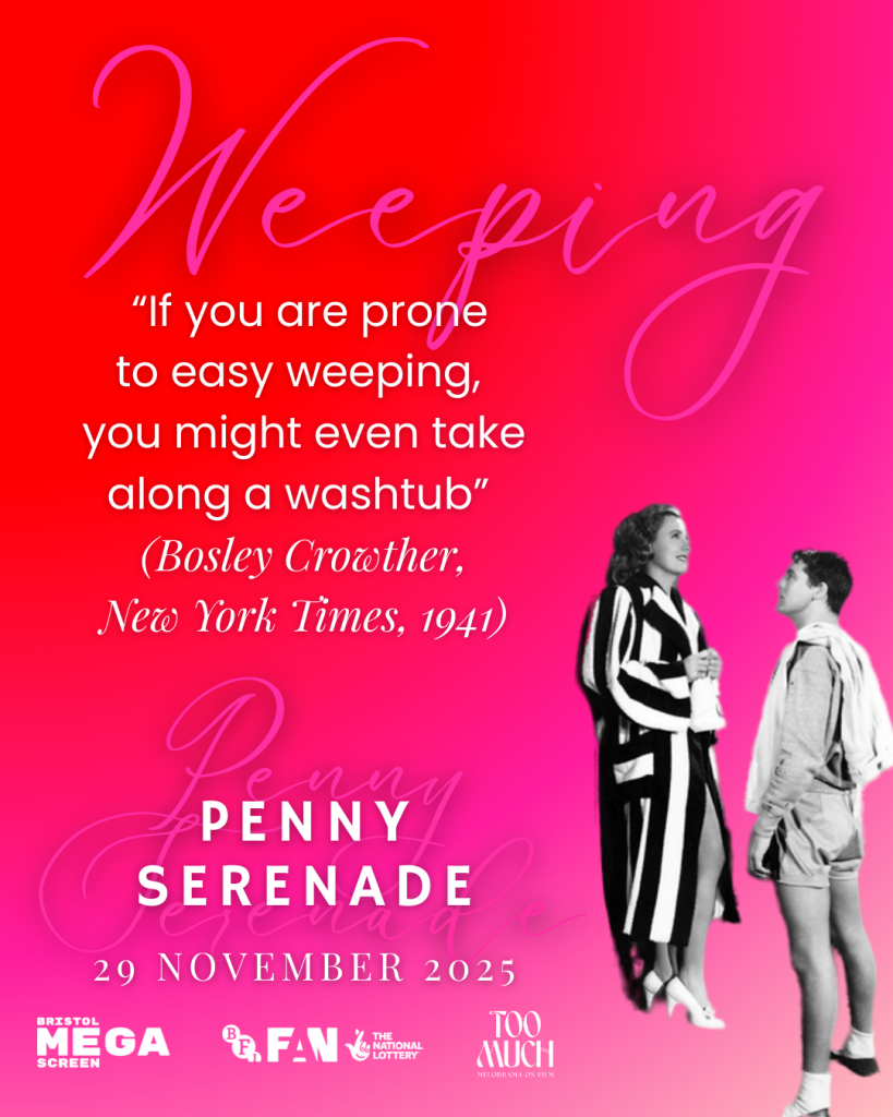 We’ve been wanting to screen Penny Serenade at the festival for quite some time, since we screened this as a watch-along during lockdown, we’ve been desperate to see it on the big screen with an audience! Not only does it feature an Oscar-nominated performance from Bristol’s own Cary Grant (one of only two Best Actor nominations), but it also features a cameo appearance from Nipper, another Bristol-boy whose global reach might even exceed our Archie’s!